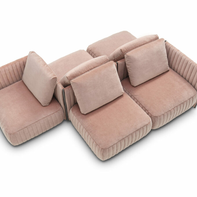 L’intelligence pratique à la base de Metis réside dans l’utilisation d’une élégante charnière métallique apparente, qui sert d’élément d’articulation entre les dossiers, application qui rend possible une flexibilité maximale sans gestes fatigants. À la fois linéaire et doux, Metis se caractérise par un précieux matelassage qui sculpte les volumes de l’assise, des dossiers et des accoudoirs.
