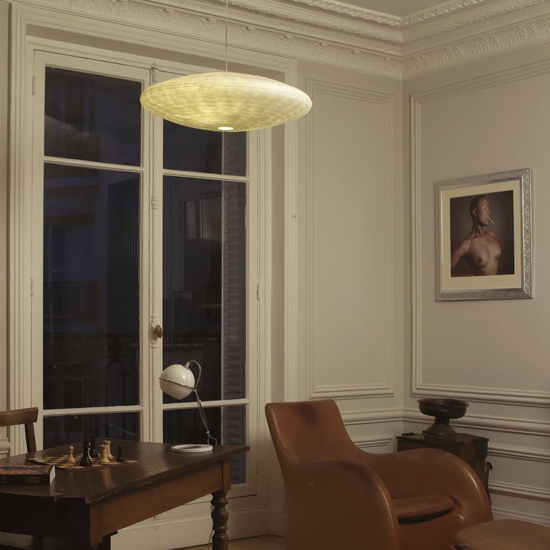 Céline Wright réconcilie artisanat et design.Moulée et structurée à la main, énergie humaine non polluante, une coque peut se composer de plus de 2000 bandelettes de papier patiemment collées sur une forme. Sa réalisation peut prendre jusqu’à 4 jours de travail, « l’éloge du temps apaise nos rythmes de consommation effrénée », souligne Céline Wright. Le pinceau est l’unique outil. La fabrication, à échelle humaine, est réalisée dans notre atelier à Montreuil et à domicile dans un réseau de proximité, réduisant ainsi la pollution liée au transport. Chaque luminaire est unique et parle de nature. La poésie est également pour nous une valeur durable.
